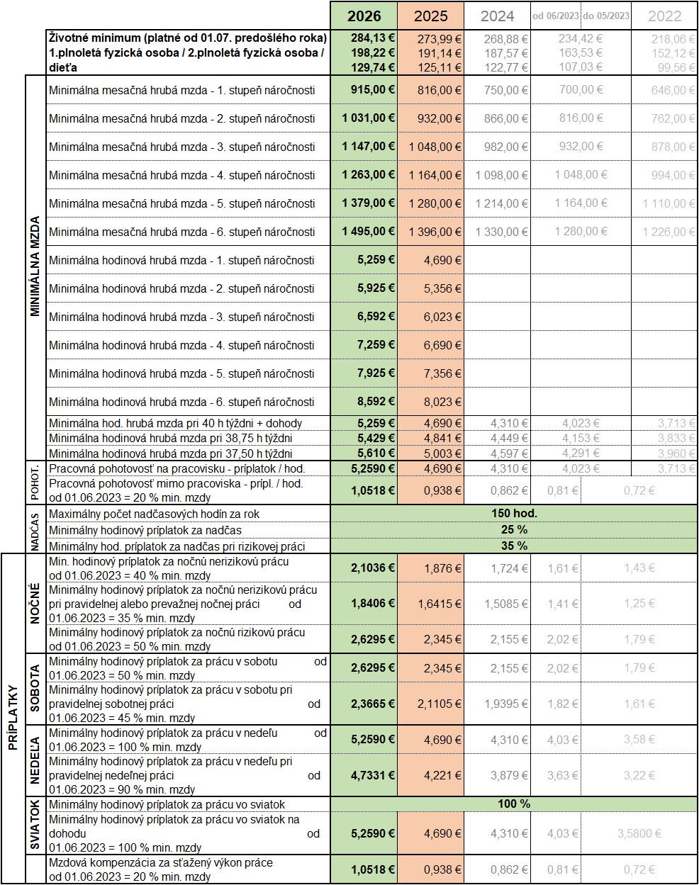 príplatky sa zaokrúhľujú smerom nahor